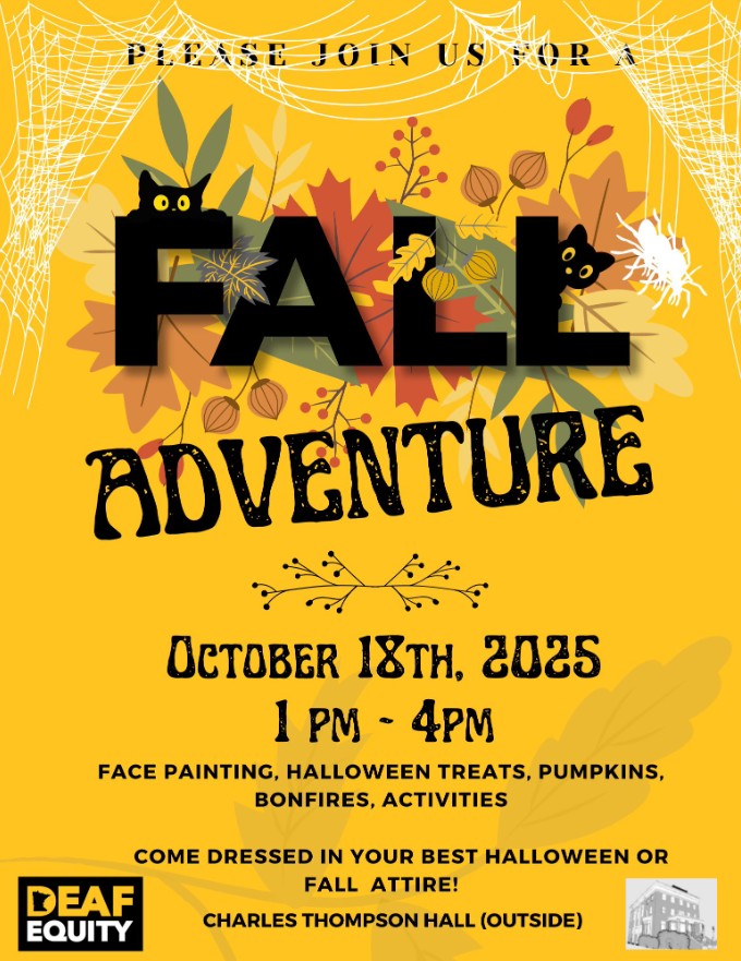Charles Thompson Memorial Hall 1824 Marshall Ave, St. Paul, Minnesota, United StatesDeaf Equity hosts Fall Adventure at Charles Thompson Hall October 18, 2025 1:00 PM - 4:00 PM Outside Parking Lot of Charles Thompson Hall Face Painting, Halloween Treats, Pumpkins, Bonfires, Activities Come dressed in your best Halloween or Fall attire!